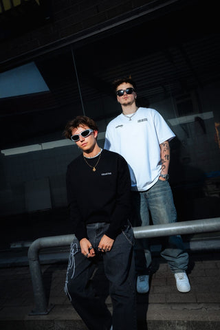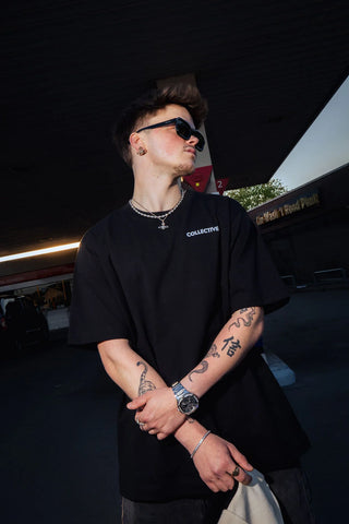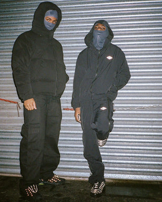 Crafted from premium, sustainable recycled materials, this vibrant set of black apparel showcases sleek, bold designs inspired by bodies of the street.
