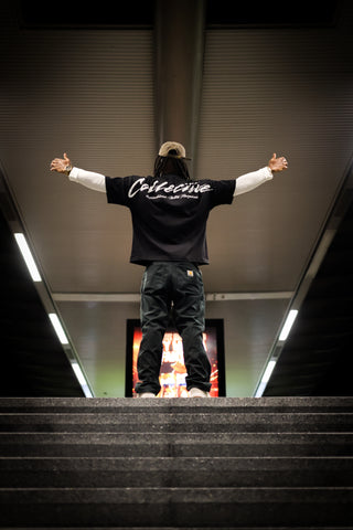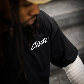Crafted from premium, sustainable recycled materials, this vibrant set of black apparel showcases sleek, bold designs inspired by bodies of the street.
