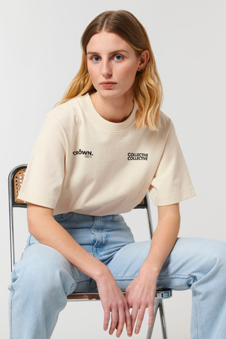 - Front Design: A Crown Collection logo is placed on the right chest, while a double-layered Collective logo adorns the left chest, creating a refined and balanced aesthetic.