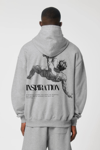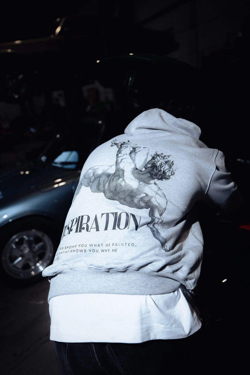 The Inspiration Hoodie blends classic art with the modern streetwear scene, offering a unique homage to timeless artistry. Featuring a finely detailed illustration of a muscular, falling man, this design symbolizes strength, vulnerability, and the fluidity of the human form, a perfect harmony of raw emotion and refined artistry.