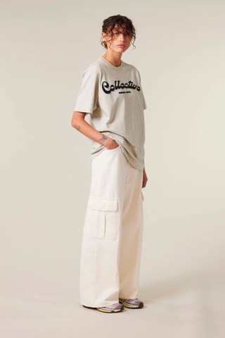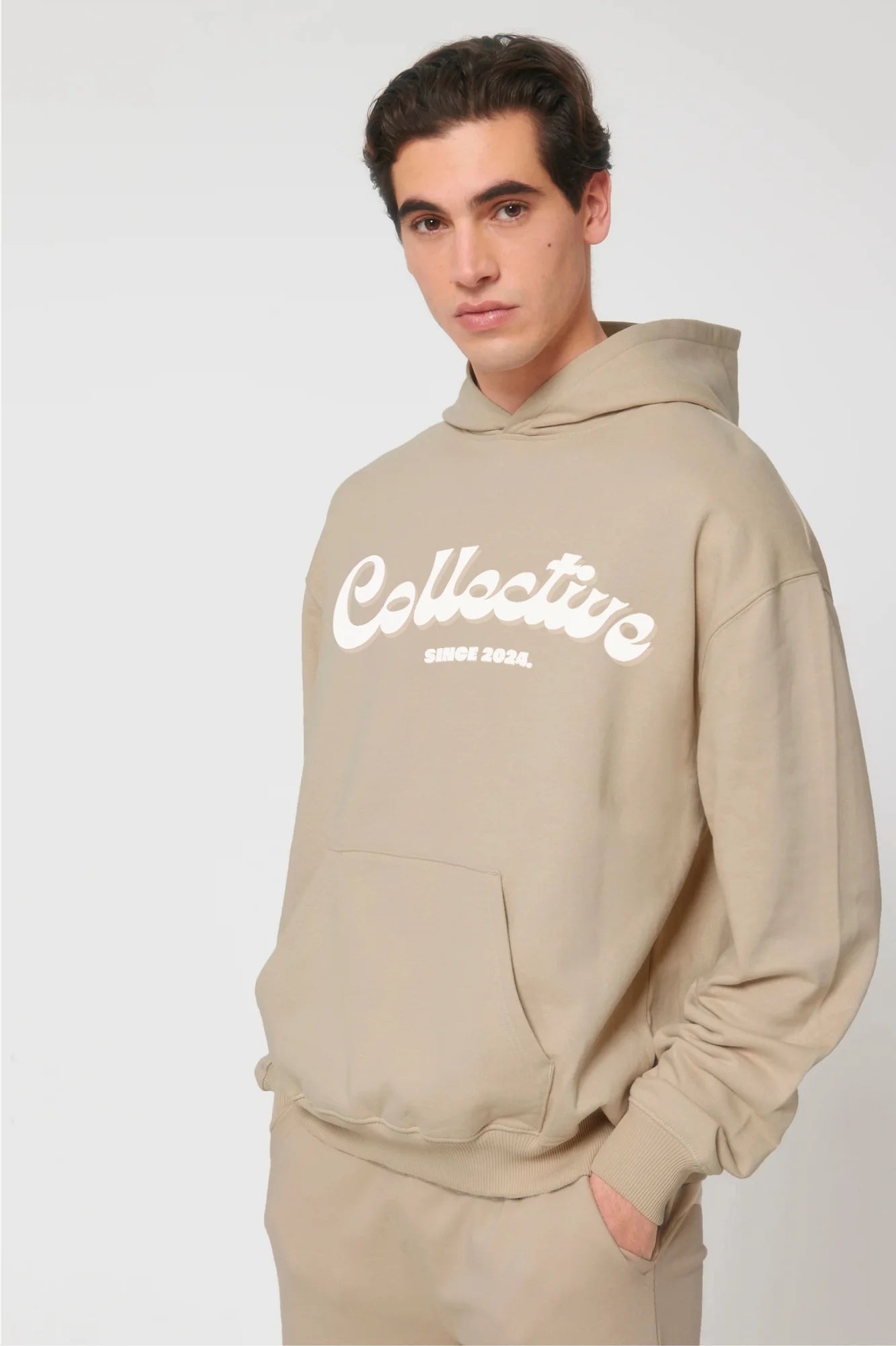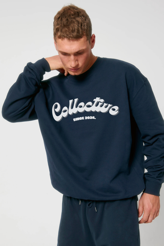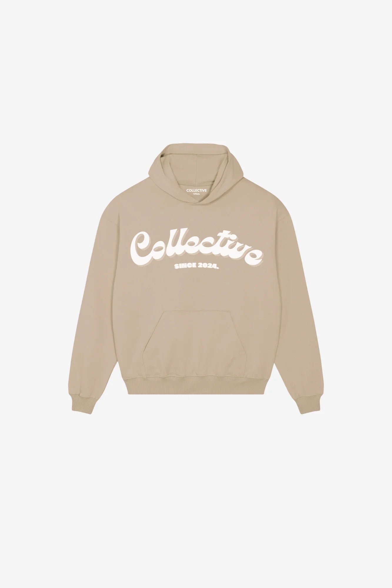 - Front Design: A bold, oversized ‘COLLECTIVE’ logo sits across the chest, inspired by retro typography, yet refined for today’s streetwear scene.